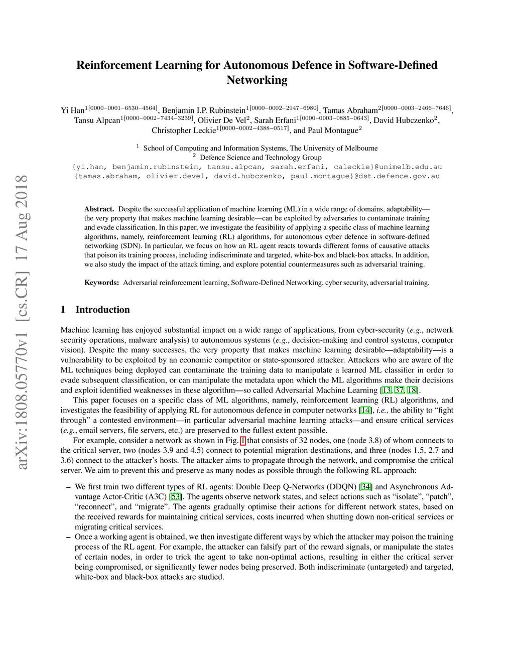 Reinforcement Learning for Autonomous Defence in Software-Defined