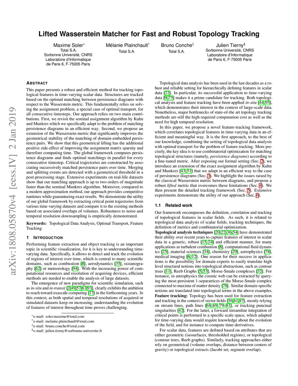Lifted Wasserstein Matcher for Fast and Robust Topology Tracking