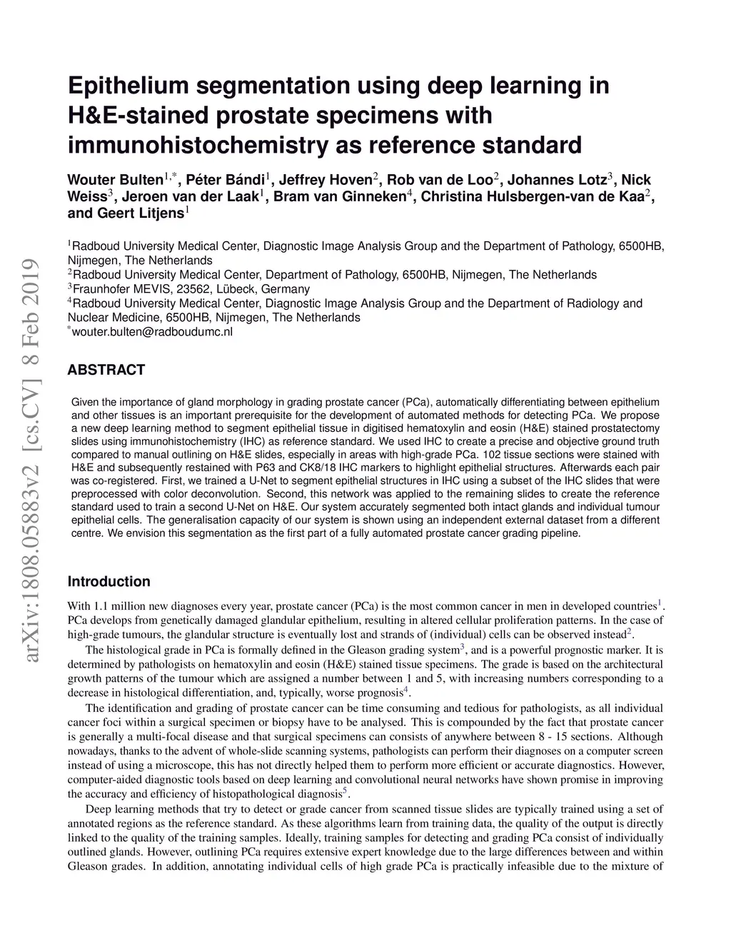 Epithelium segmentation using deep learning in H&E-stained prostate