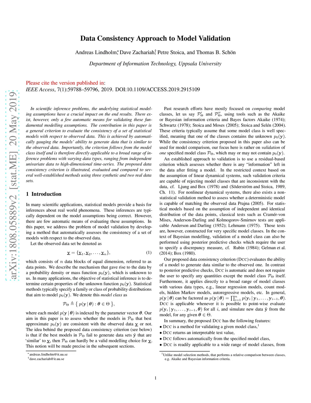 Data Consistency Approach to Model Validation