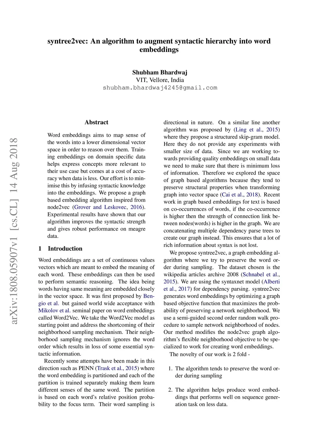 Syntree2Vec - An algorithm to augment syntactic hierarchy into word
