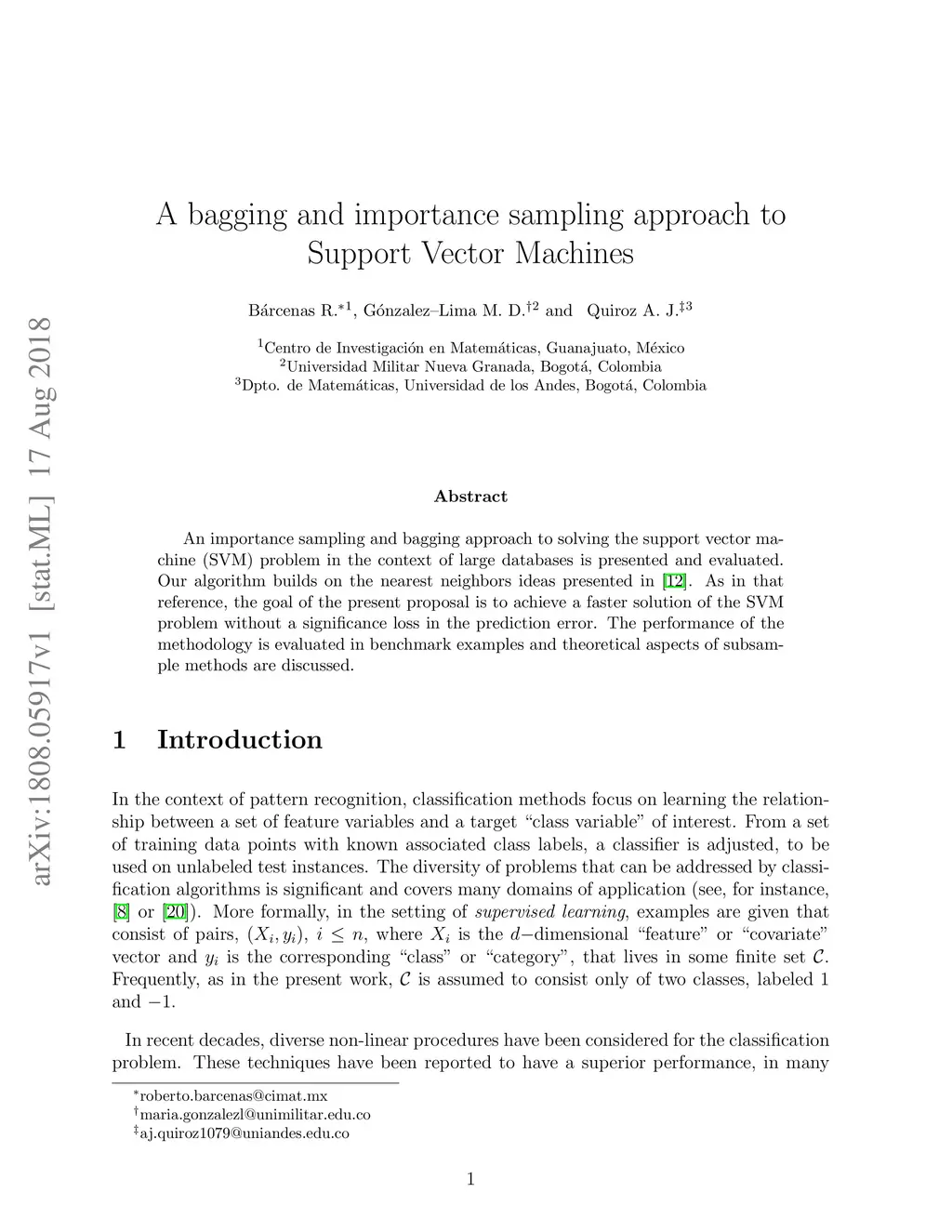 An importance sampling and bagging approach to solving the support vector machine (SVM) problem in the context of large databases is presented and evaluated. Our algorithm builds on the nearest neighbors ideas presented in Camelo at al. (2015). As in that reference, the goal of the present proposal is to achieve a faster solution of the SVM problem without a significance loss in the prediction error. The performance of the methodology is evaluated in benchmark examples and theoretical aspects of subsample methods are discussed.