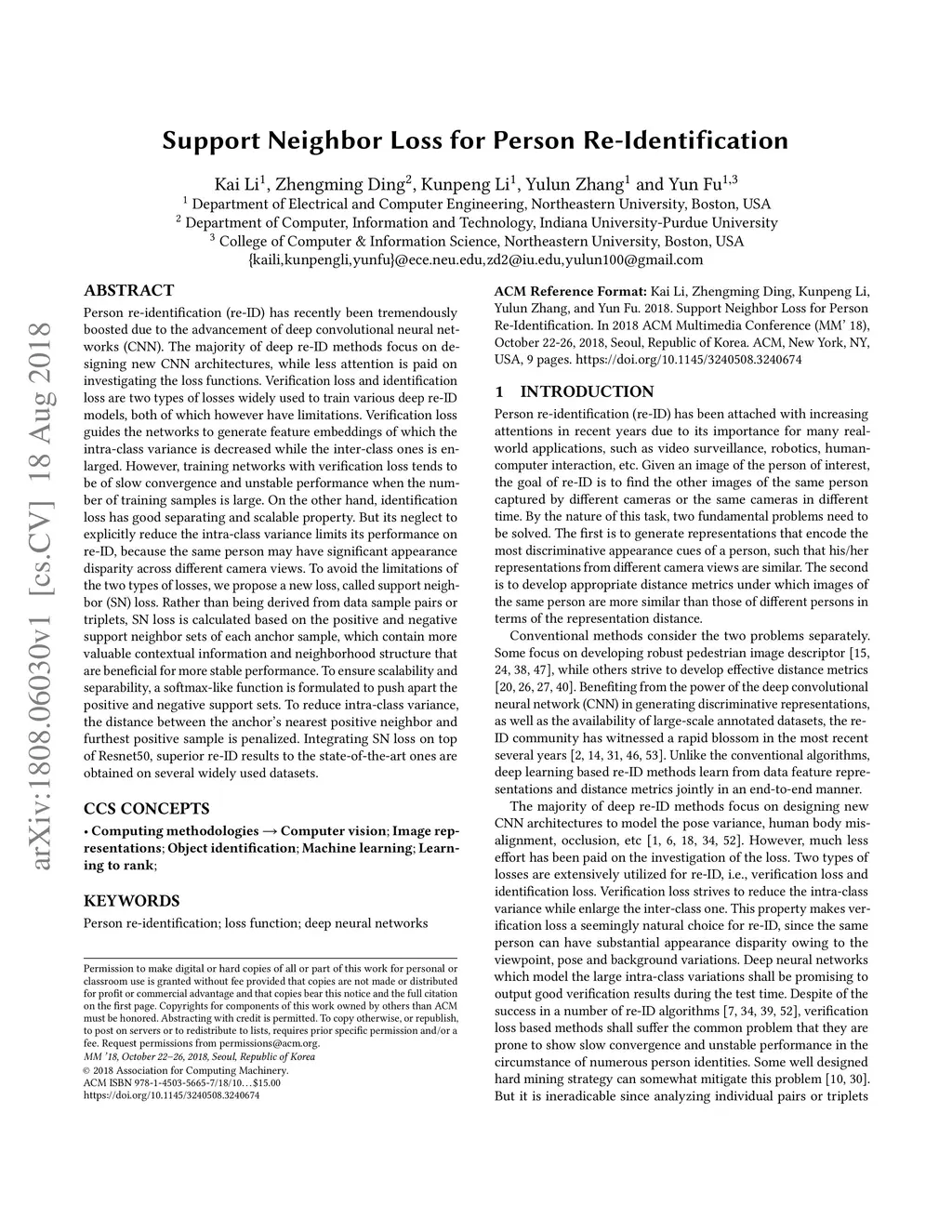 Support Neighbor Loss for Person Re-Identification