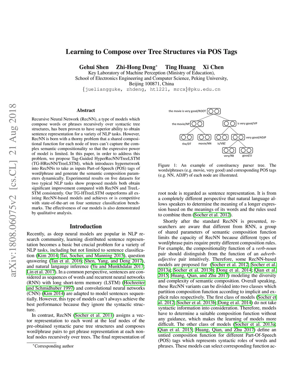 Recursive Neural Network (RecNN), a type of models which compose words or phrases recursively over syntactic tree structures, has been proven to have superior ability to obtain sentence representation for a variety of NLP tasks. However, RecNN is born with a thorny problem that a shared compositional function for each node of trees can't capture the complex semantic compositionality so that the expressive power of model is limited. In this paper, in order to address this problem, we propose Tag-Guided HyperRecNN/TreeLSTM (TG-HRecNN/TreeLSTM), which introduces hypernetwork into RecNNs to take as inputs Part-of-Speech (POS) tags of word/phrase and generate the semantic composition parameters dynamically. Experimental results on five datasets for two typical NLP tasks show proposed models both obtain significant improvement compared with RecNN and TreeLSTM consistently. Our TG-HTreeLSTM outperforms all existing RecNN-based models and achieves or is competitive with state-of-the-art on four sentence classification benchmarks. The effectiveness of our models is also demonstrated by qualitative analysis.