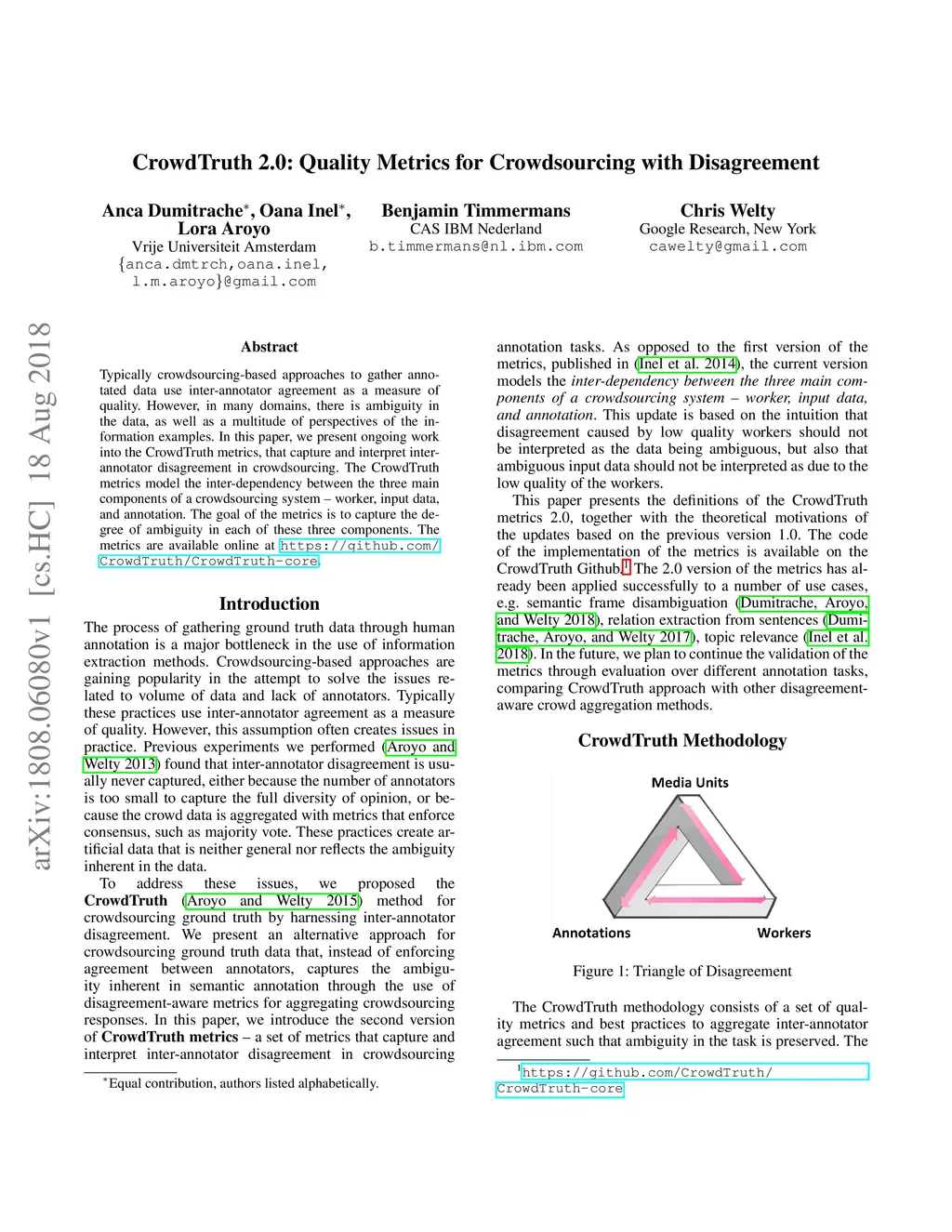 CrowdTruth 2.0: Quality Metrics for Crowdsourcing with Disagreement