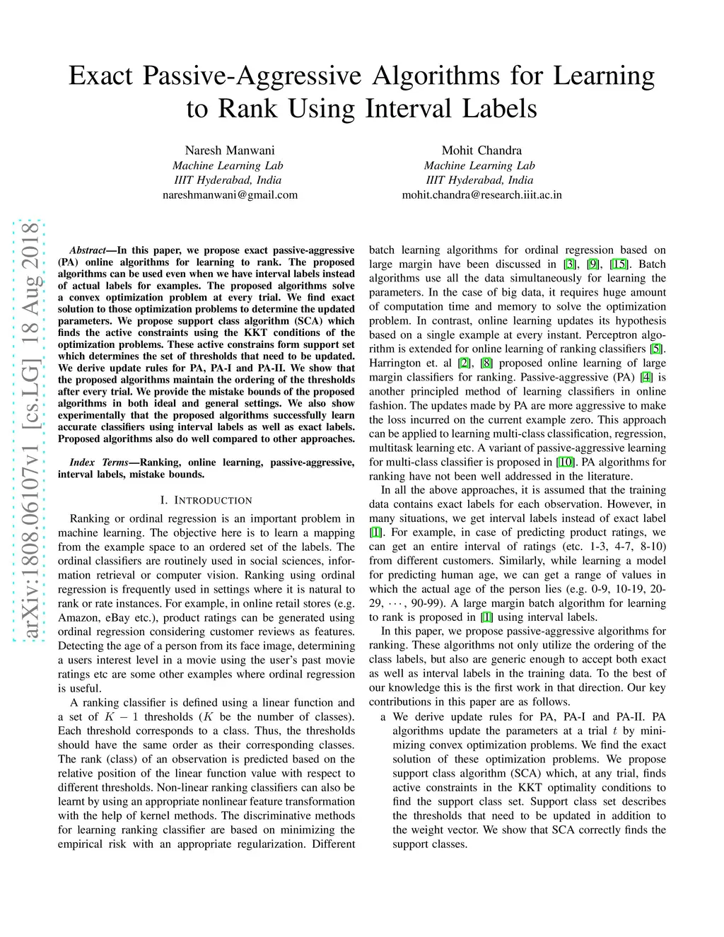 Exact Passive-Aggressive Algorithms for Learning to Rank Using Interval