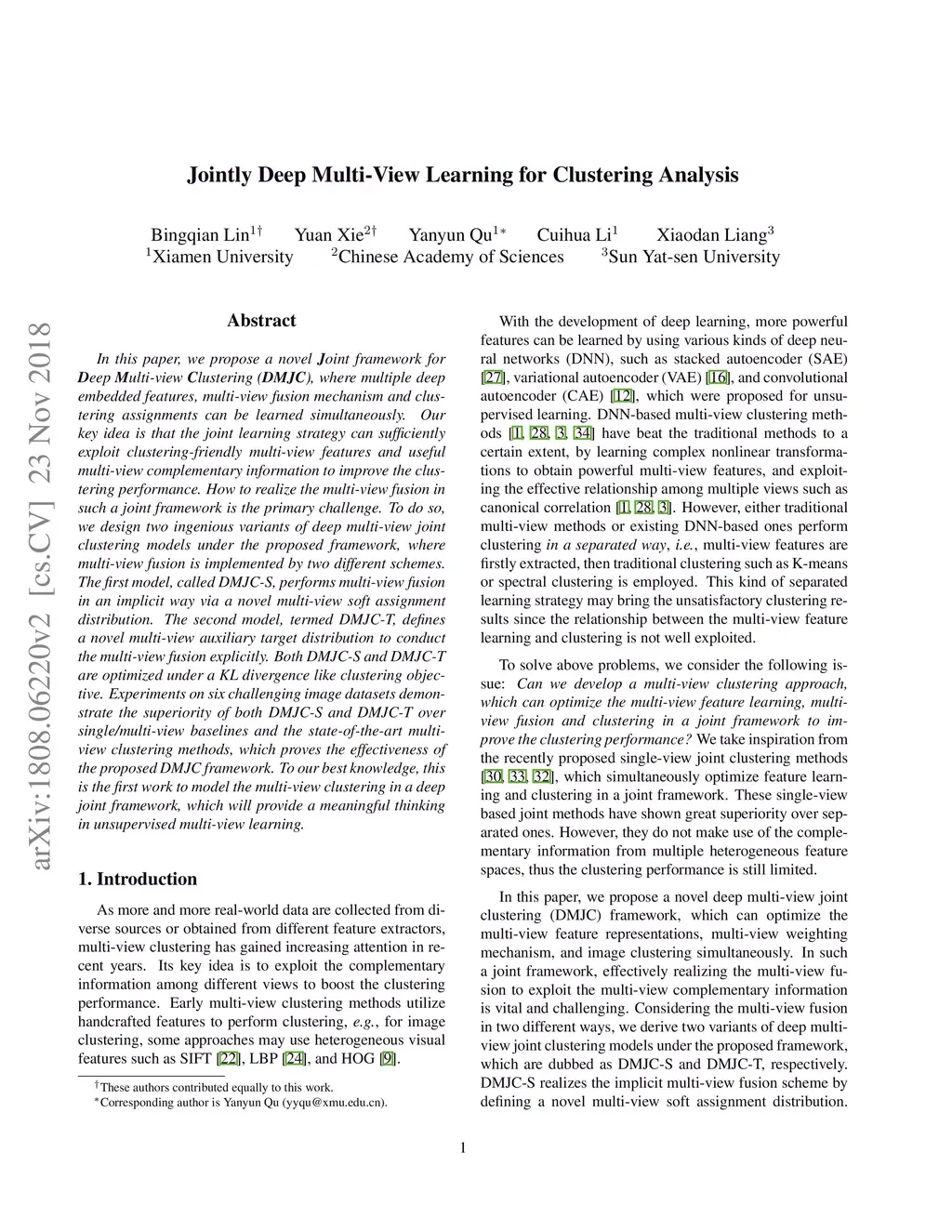 Jointly Deep Multi-View Learning for Clustering Analysis