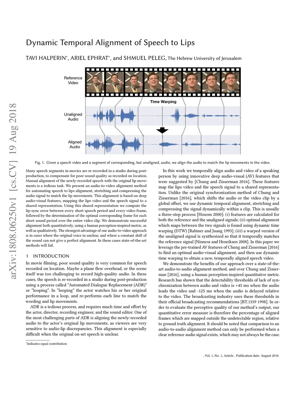 Many speech segments in movies are re-recorded in a studio during postproduction, to compensate for poor sound quality as recorded on location. Manual alignment of the newly-recorded speech with the original lip movements is a tedious task. We present an audio-to-video alignment method for automating speech to lips alignment, stretching and compressing the audio signal to match the lip movements. This alignment is based on deep audio-visual features, mapping the lips video and the speech signal to a shared representation. Using this shared representation we compute the lip-sync error between every short speech period and every video frame, followed by the determination of the optimal corresponding frame for each short sound period over the entire video clip. We demonstrate successful alignment both quantitatively, using a human perception-inspired metric, as well as qualitatively. The strongest advantage of our audio-to-video approach is in cases where the original voice in unclear, and where a constant shift of the sound can not give a perfect alignment. In these cases state-of-the-art methods will fail.