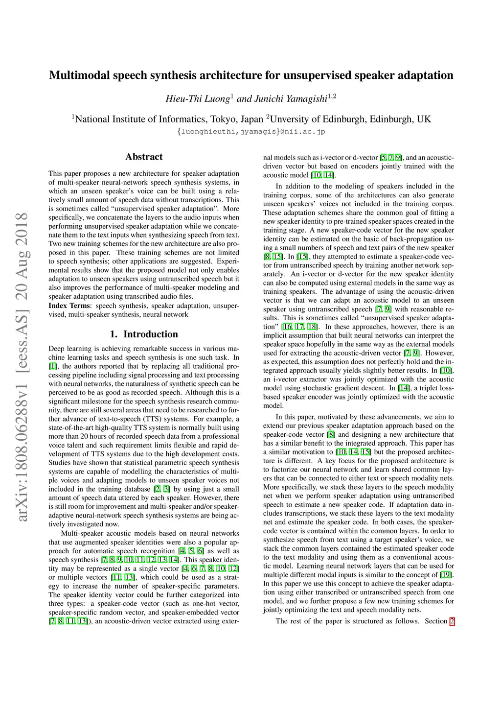Multimodal speech synthesis architecture for unsupervised speaker
