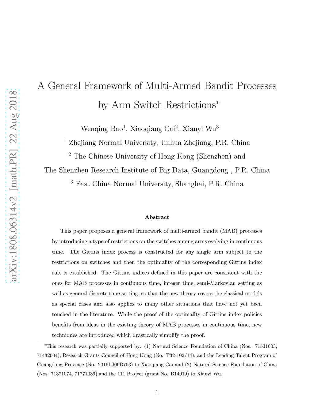 A General Framework of Multi-Armed Bandit Processes by Arm Switch