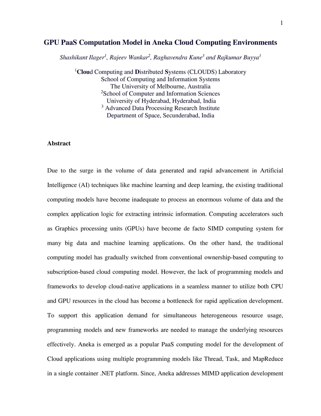 GPU PaaS Computation Model in Aneka Cloud Computing Environment