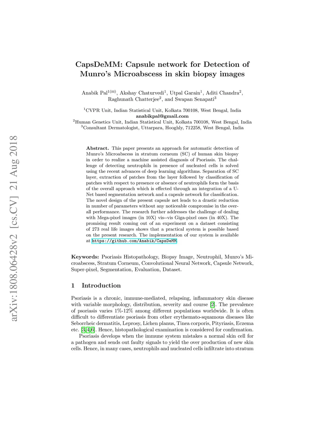 CapsDeMM: Capsule network for Detection of Munro's Microabscess in skin