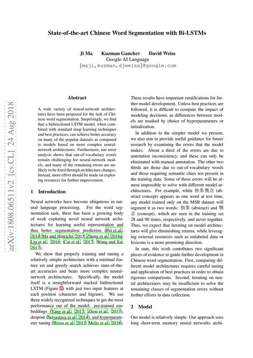 State-of-the-art Chinese Word Segmentation with Bi-LSTMs