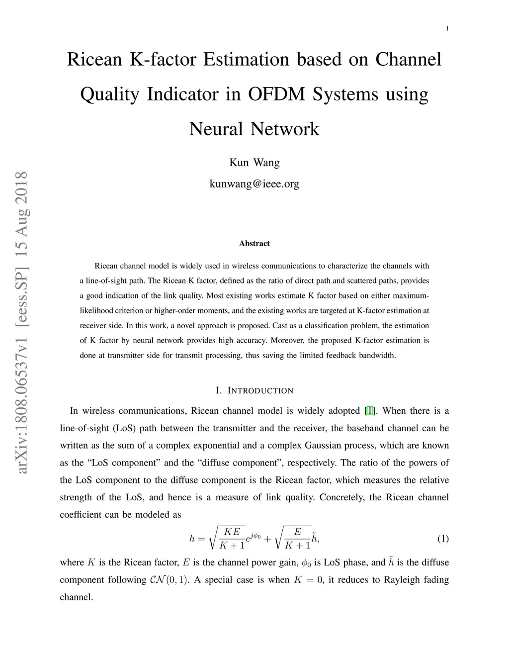 Ricean K-factor Estimation based on Channel Quality Indicator in OFDM