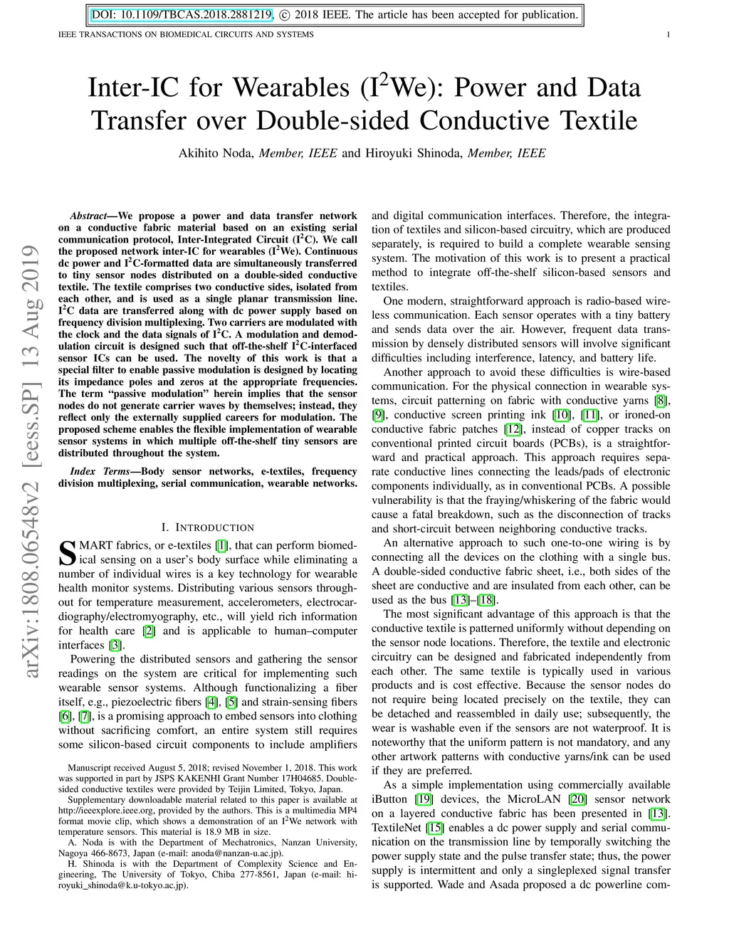 Inter-IC for Wearables (I2We): Power and Data Transfer over Double-sided