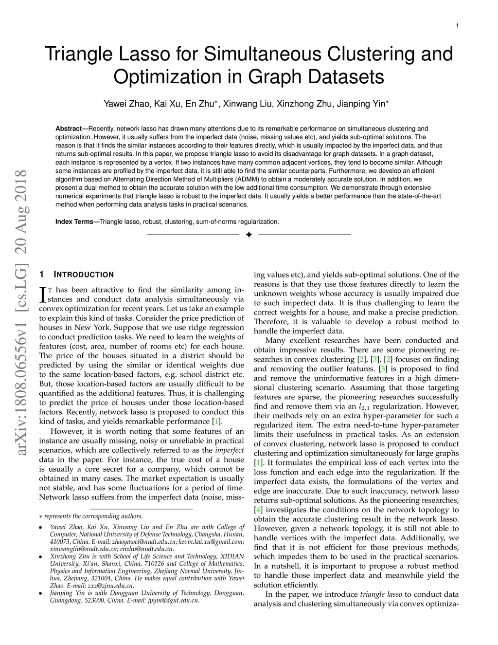 Recently, network lasso has drawn many attentions due to its remarkable performance on simultaneous clustering and optimization. However, it usually suffers from the imperfect data (noise, missing values etc), and yields sub-optimal solutions. The reason is that it finds the similar instances according to their features directly, which is usually impacted by the imperfect data, and thus returns sub-optimal results. In this paper, we propose triangle lasso to avoid its disadvantage. Triangle lasso finds the similar instances according to their neighbours. If two instances have many common neighbours, they tend to become similar. Although some instances are profiled by the imperfect data, it is still able to find the similar counterparts. Furthermore, we develop an efficient algorithm based on Alternating Direction Method of Multipliers (ADMM) to obtain a moderately accurate solution. In addition, we present a dual method to obtain the accurate solution with the low additional time consumption. We demonstrate through extensive numerical experiments that triangle lasso is robust to the imperfect data. It usually yields a better performance than the state-of-the-art method when performing data analysis tasks in practical scenarios.