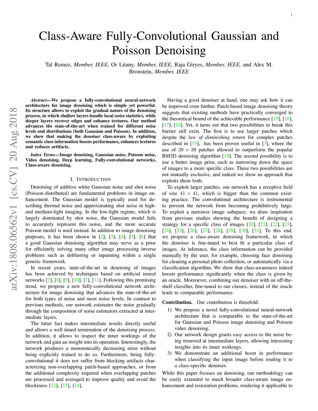 We propose a fully-convolutional neural-network architecture for image denoising which is simple yet powerful. Its structure allows to exploit the gradual nature of the denoising process, in which shallow layers handle local noise statistics, while deeper layers recover edges and enhance textures. Our method advances the state-of-the-art when trained for different noise levels and distributions (both Gaussian and Poisson). In addition, we show that making the denoiser class-aware by exploiting semantic class information boosts performance, enhances textures and reduces artifacts.