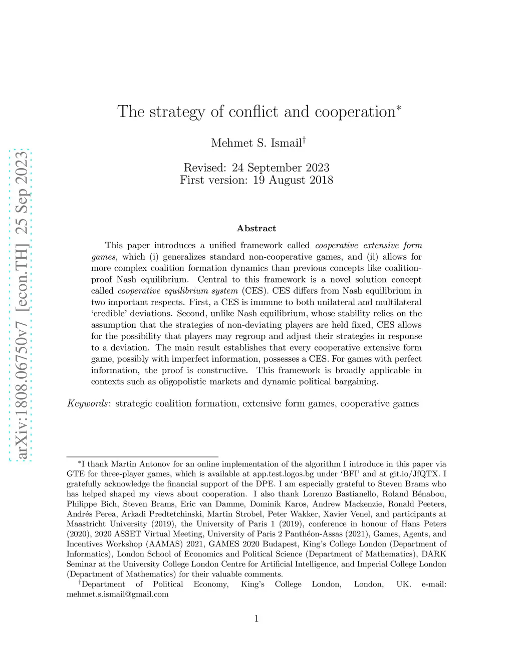 The strategy of conflict and cooperation