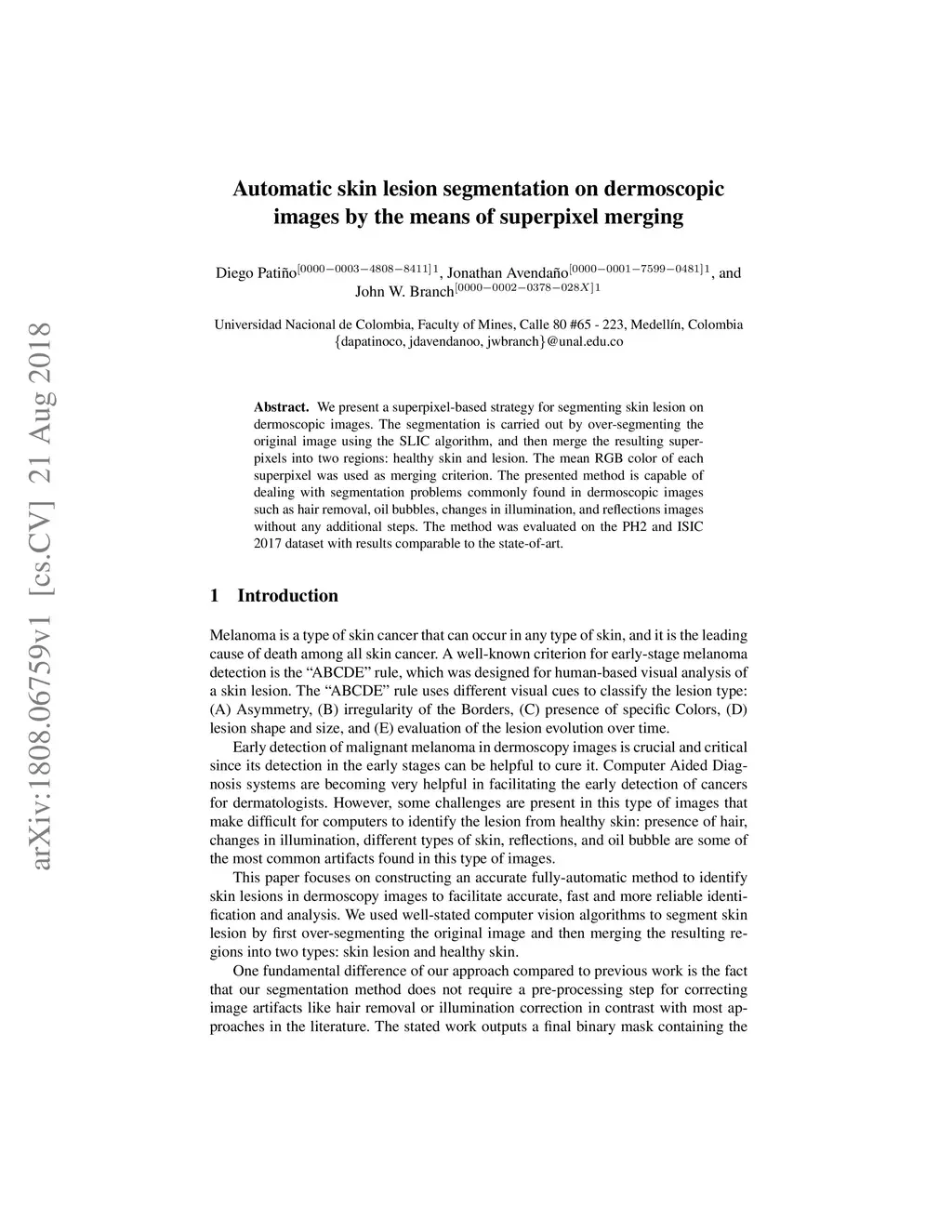 Automatic skin lesion segmentation on dermoscopic images by the means of