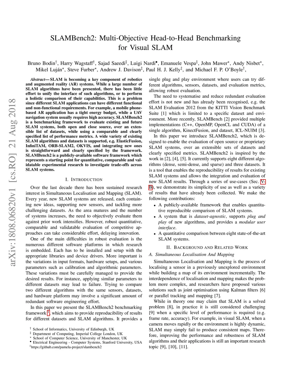 SLAMBench2: Multi-Objective Head-to-Head Benchmarking for Visual SLAM