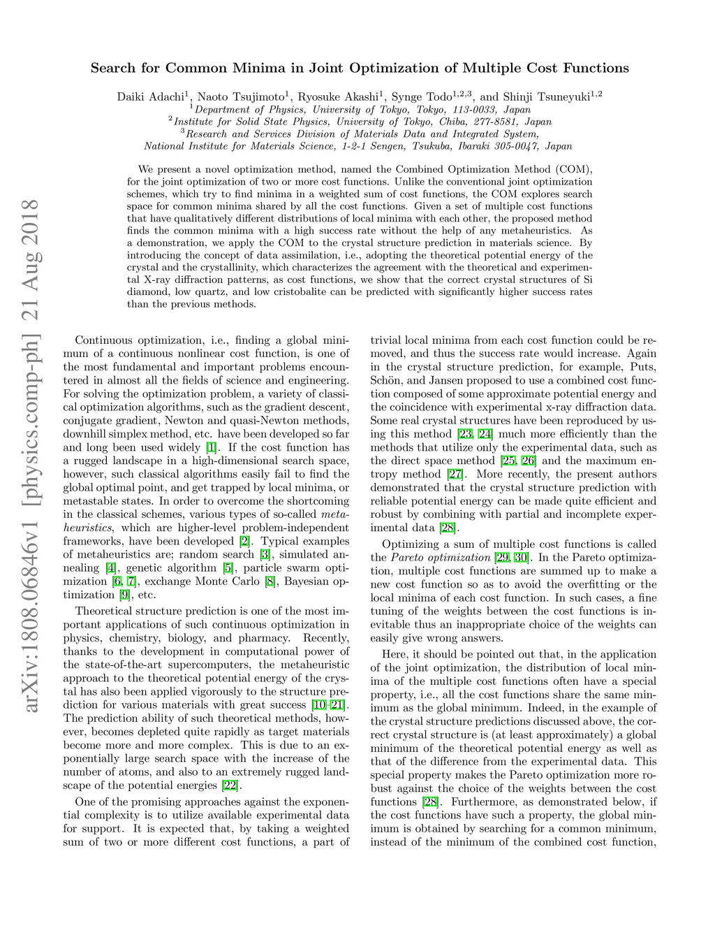 We present a novel optimization method, named the Combined Optimization Method (COM), for the joint optimization of two or more cost functions. Unlike the conventional joint optimization schemes, which try to find minima in a weighted sum of cost functions, the COM explores search space for common minima shared by all the cost functions. Given a set of multiple cost functions that have qualitatively different distributions of local minima with each other, the proposed method finds the common minima with a high success rate without the help of any metaheuristics. As a demonstration, we apply the COM to the crystal structure prediction in materials science. By introducing the concept of data assimilation, i.e., adopting the theoretical potential energy of the crystal and the crystallinity, which characterizes the agreement with the theoretical and experimental X-ray diffraction patterns, as cost functions, we show that the correct crystal structures of Si diamond, low quartz, and low cristobalite can be predicted with significantly higher success rates than the previous methods.