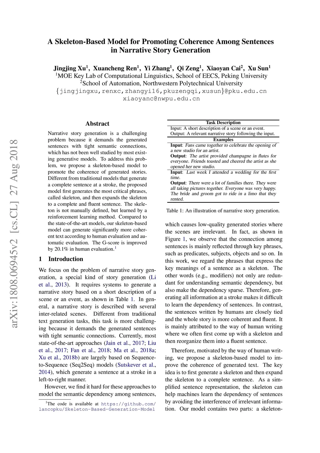 A Skeleton-Based Model for Promoting Coherence Among Sentences in