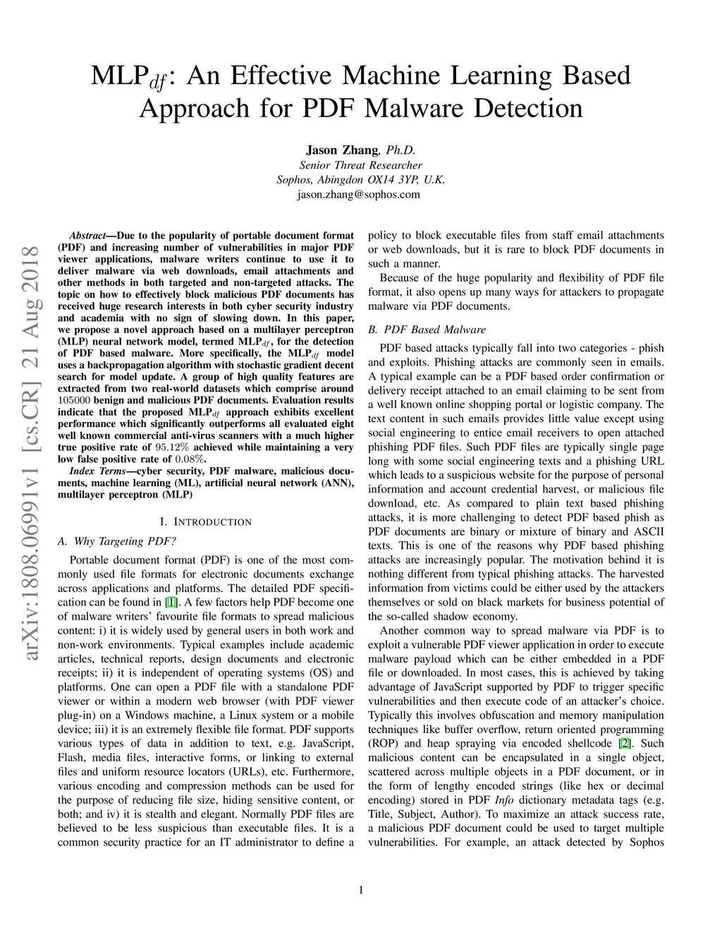 MLPdf: An Effective Machine Learning Based Approach for PDF Malware