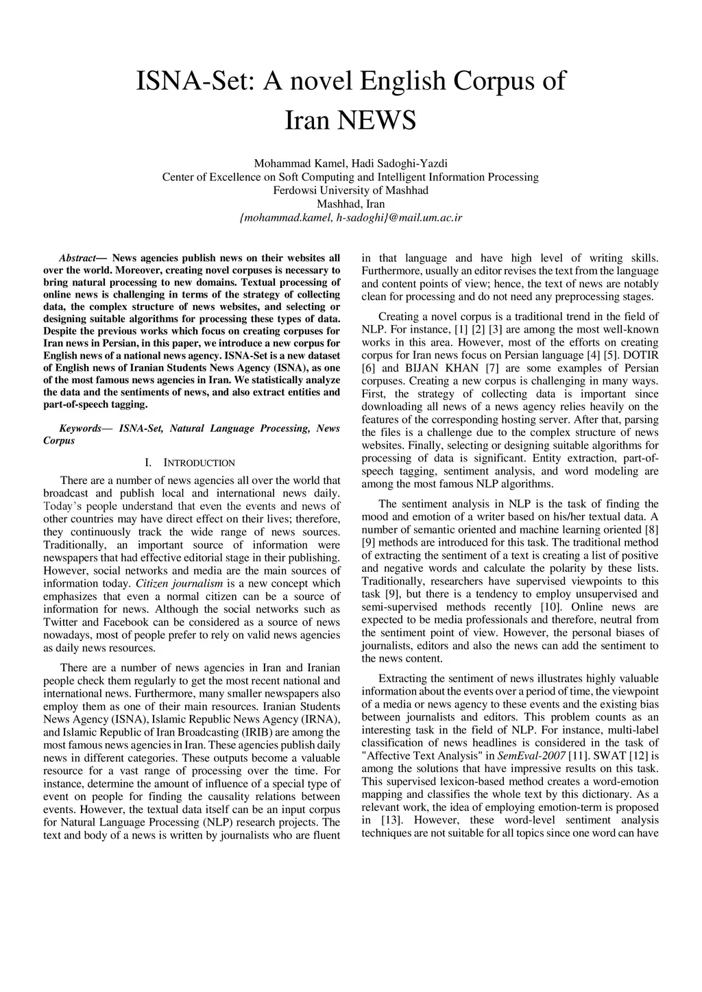 ISNA-Set: A novel English Corpus of Iran NEWS