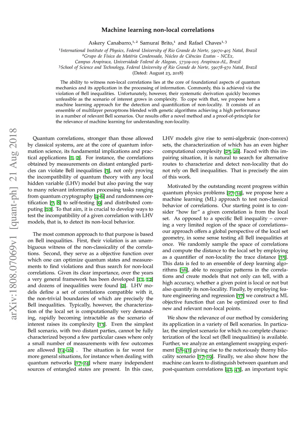 Machine learning non-local correlations