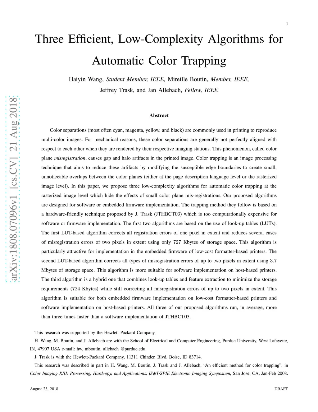Three Efficient, Low-Complexity Algorithms for Automatic Color Trapping