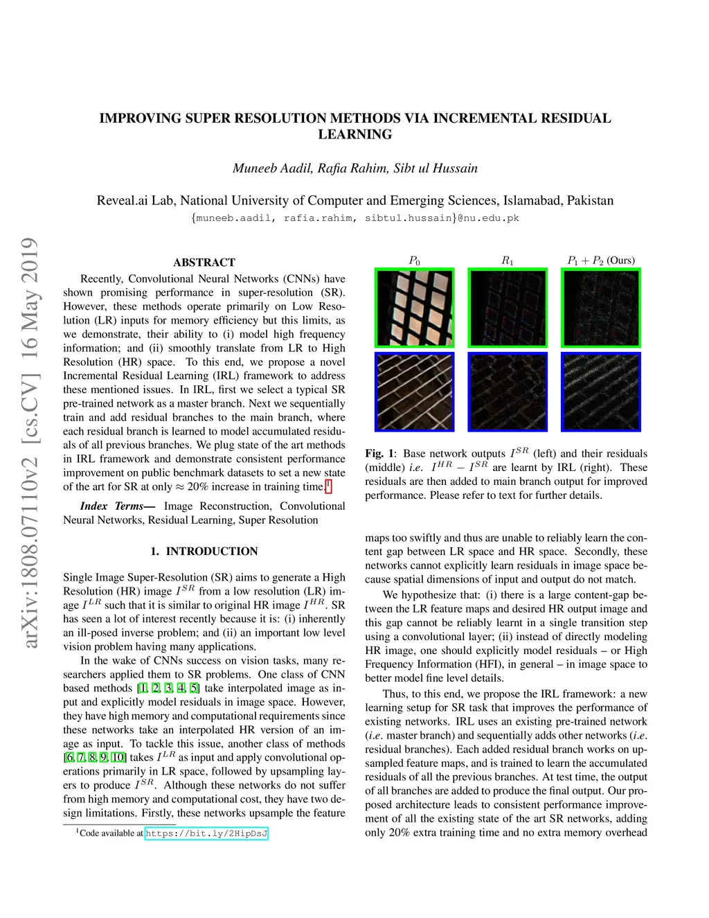 Recently, Convolutional Neural Networks (CNNs) have shown promising performance in super-resolution (SR). However, these methods operate primarily on Low Resolution (LR) inputs for memory efficiency but this limits, as we demonstrate, their ability to (i) model high frequency information; and (ii) smoothly translate from LR to High Resolution (HR) space. To this end, we propose a novel Incremental Residual Learning (IRL) framework to address these mentioned issues. In IRL, first we select a typical SR pre-trained network as a master branch. Next we sequentially train and add residual branches to the main branch, where each residual branch is learned to model accumulated residuals of all previous branches. We plug state of the art methods in IRL framework and demonstrate consistent performance improvement on public benchmark datasets to set a new state of the art for SR at only approximately 20% increase in training time.