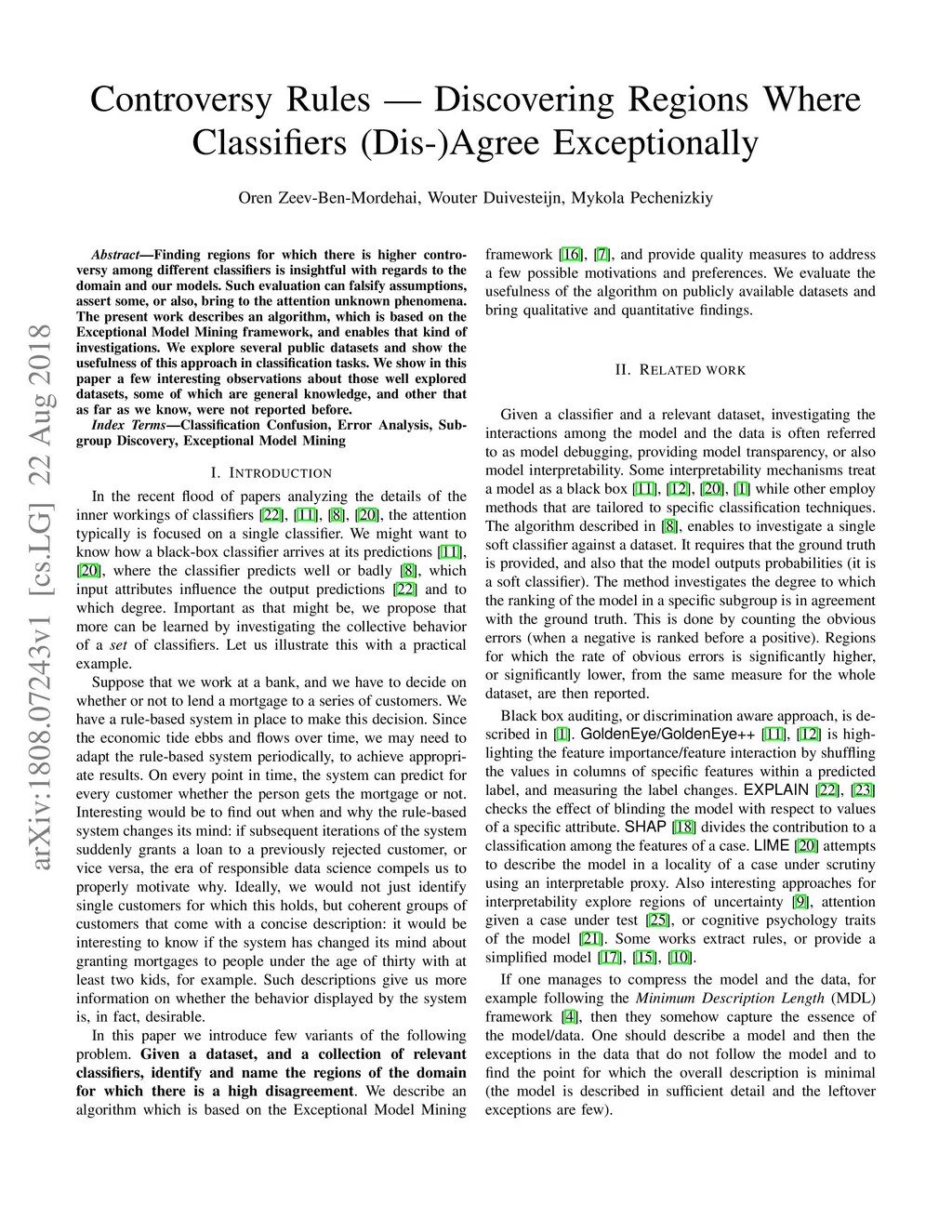 Finding regions for which there is higher controversy among different classifiers is insightful with regards to the domain and our models. Such evaluation can falsify assumptions, assert some, or also, bring to the attention unknown phenomena. The present work describes an algorithm, which is based on the Exceptional Model Mining framework, and enables that kind of investigations. We explore several public datasets and show the usefulness of this approach in classification tasks. We show in this paper a few interesting observations about those well explored datasets, some of which are general knowledge, and other that as far as we know, were not reported before.