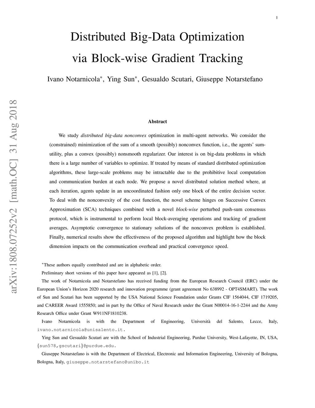 Distributed Big-Data Optimization via Block-wise Gradient Tracking