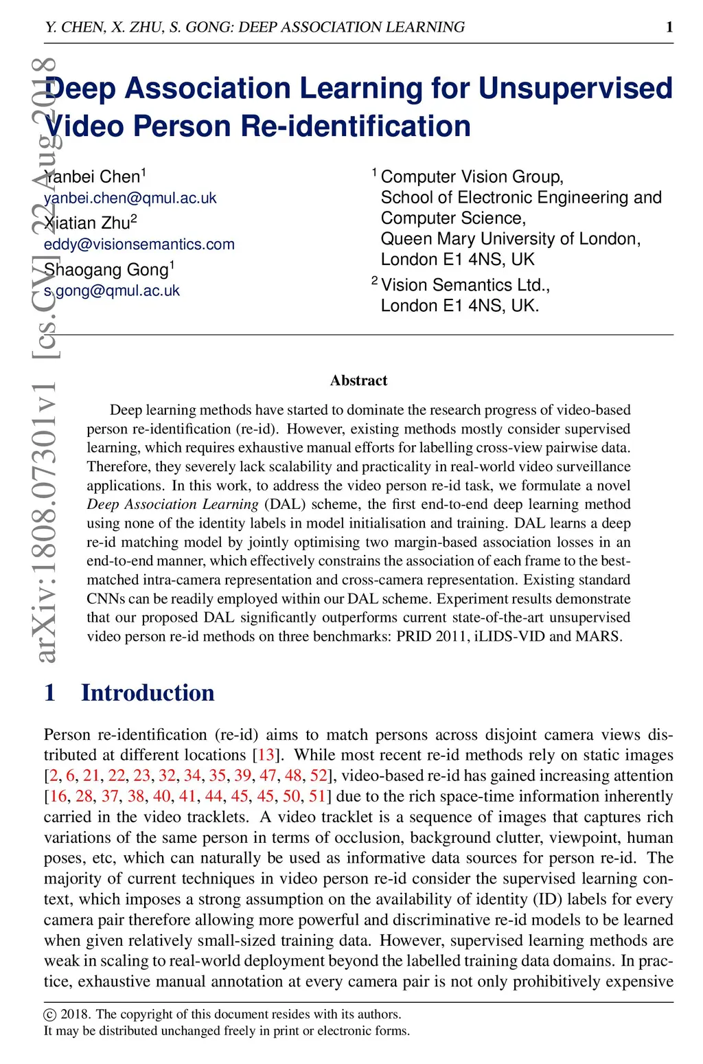 Deep learning methods have started to dominate the research progress of video-based person re-identification (re-id). However, existing methods mostly consider supervised learning, which requires exhaustive manual efforts for labelling cross-view pairwise data. Therefore, they severely lack scalability and practicality in real-world video surveillance applications. In this work, to address the video person re-id task, we formulate a novel Deep Association Learning (DAL) scheme, the first end-to-end deep learning method using none of the identity labels in model initialisation and training. DAL learns a deep re-id matching model by jointly optimising two margin-based association losses in an end-to-end manner, which effectively constrains the association of each frame to the best-matched intra-camera representation and cross-camera representation. Existing standard CNNs can be readily employed within our DAL scheme. Experiment results demonstrate that our proposed DAL significantly outperforms current state-of-the-art unsupervised video person re-id methods on three benchmarks: PRID 2011, iLIDS-VID and MARS.