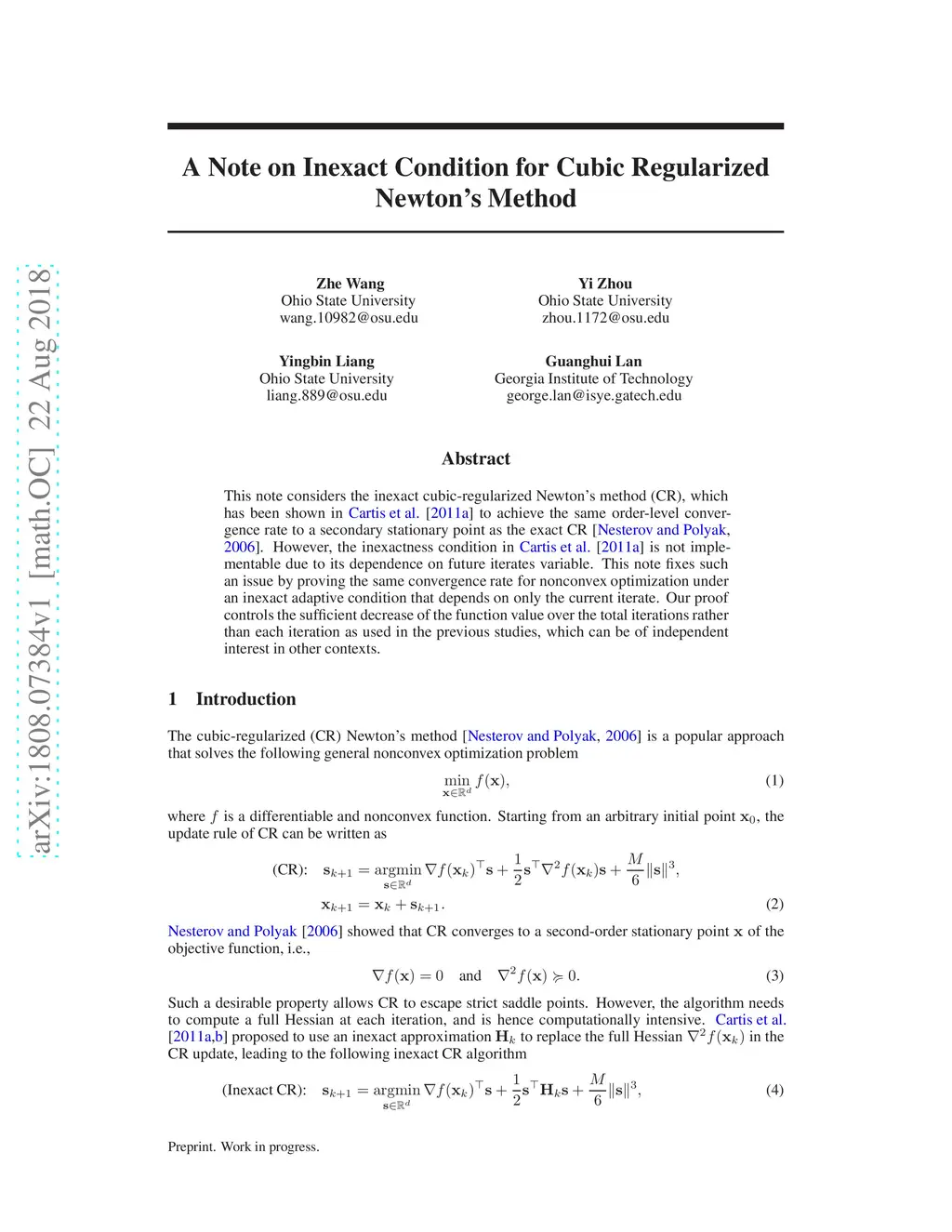 A Note on Inexact Condition for Cubic Regularized Newton's Method