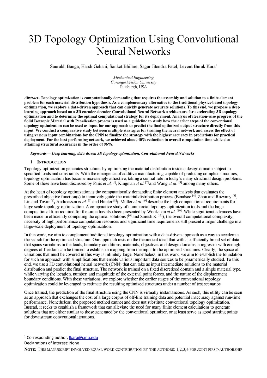 3D Topology Optimization using Convolutional Neural Networks