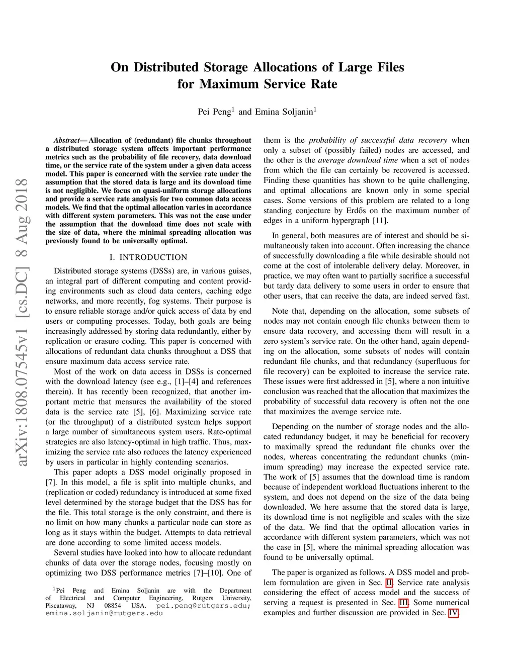 On Distributed Storage Allocations of Large Files for Maximum Service