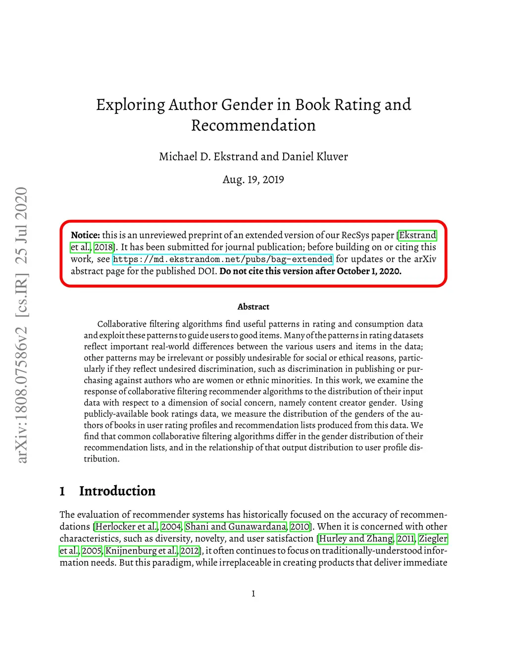 Collaborative filtering algorithms find useful patterns in rating and consumption data and exploit these patterns to guide users to good items. Many of the patterns in rating datasets reflect important real-world differences between the various users and items in the data; other patterns may be irrelevant or possibly undesirable for social or ethical reasons, particularly if they reflect undesired discrimination, such as discrimination in publishing or purchasing against authors who are women or ethnic minorities. In this work, we examine the response of collaborative filtering recommender algorithms to the distribution of their input data with respect to a dimension of social concern, namely content creator gender. Using publicly-available book ratings data, we measure the distribution of the genders of the authors of books in user rating profiles and recommendation lists produced from this data. We find that common collaborative filtering algorithms differ in the gender distribution of their recommendation lists, and in the relationship of that output distribution to user profile distribution.