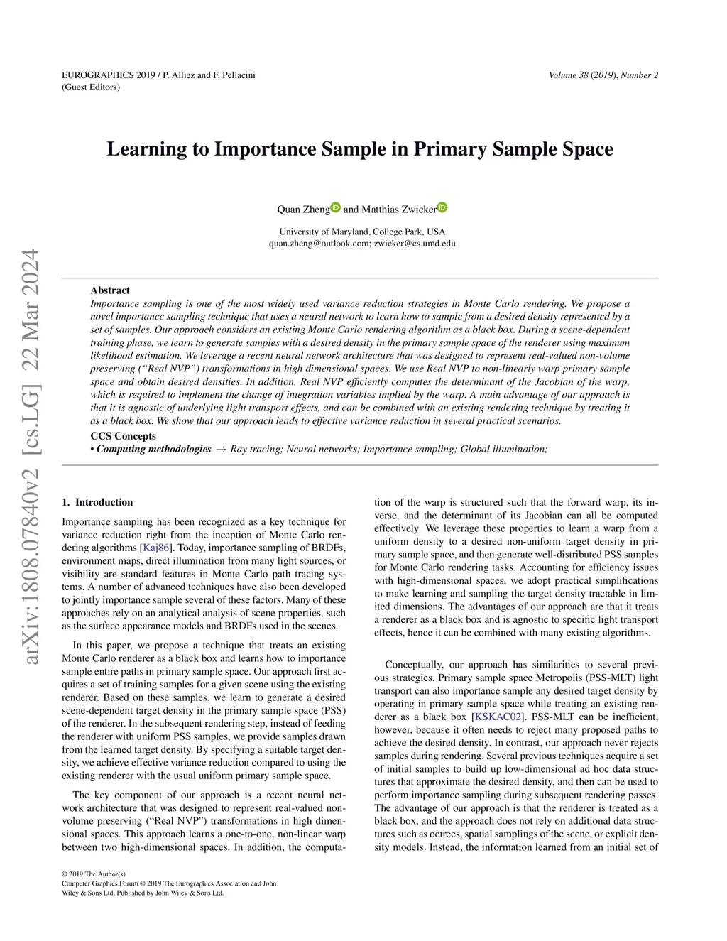 Importance sampling is one of the most widely used variance reduction strategies in Monte Carlo rendering. In this paper, we propose a novel importance sampling technique that uses a neural network to learn how to sample from a desired density represented by a set of samples. Our approach considers an existing Monte Carlo rendering algorithm as a black box. During a scene-dependent training phase, we learn to generate samples with a desired density in the primary sample space of the rendering algorithm using maximum likelihood estimation. We leverage a recent neural network architecture that was designed to represent real-valued non-volume preserving ('Real NVP') transformations in high dimensional spaces. We use Real NVP to non-linearly warp primary sample space and obtain desired densities. In addition, Real NVP efficiently computes the determinant of the Jacobian of the warp, which is required to implement the change of integration variables implied by the warp. A main advantage of our approach is that it is agnostic of underlying light transport effects, and can be combined with many existing rendering techniques by treating them as a black box. We show that our approach leads to effective variance reduction in several practical scenarios.