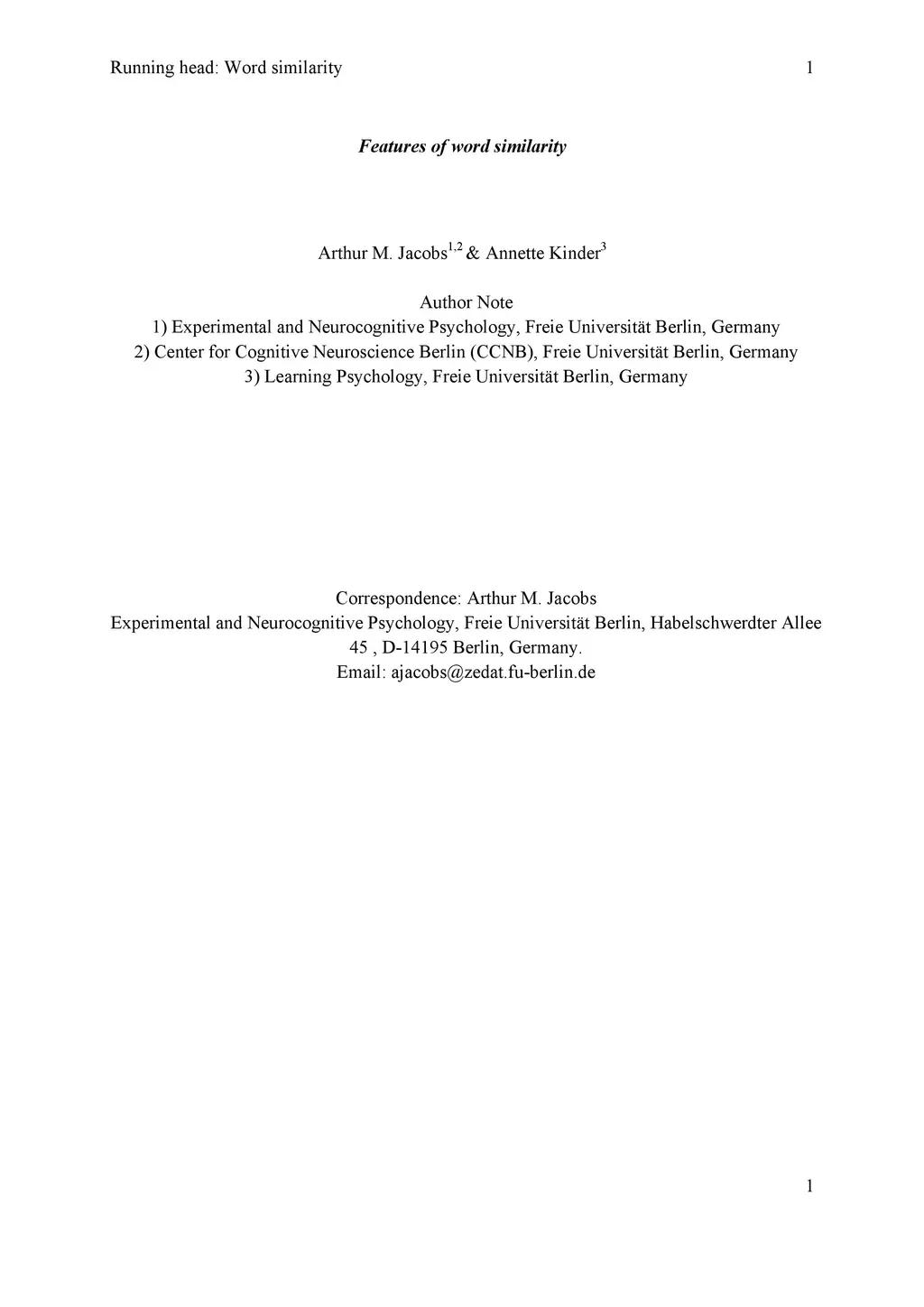Features of word similarity