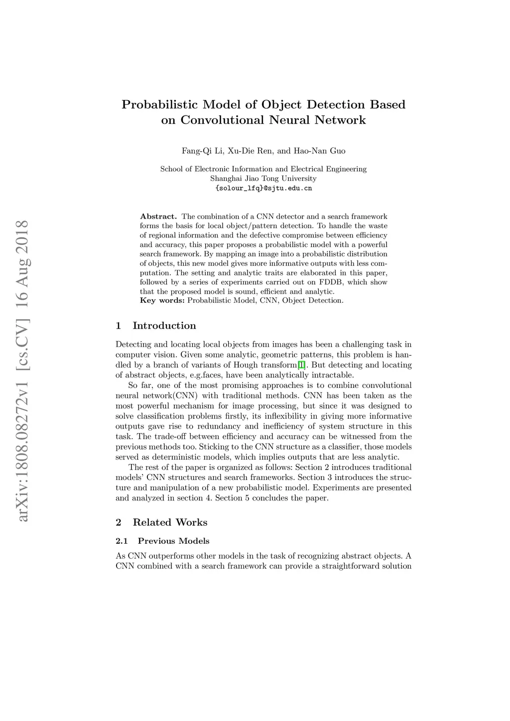 The combination of a CNN detector and a search framework forms the basis for local object/pattern detection. To handle the waste of regional information and the defective compromise between efficiency and accuracy, this paper proposes a probabilistic model with a powerful search framework. By mapping an image into a probabilistic distribution of objects, this new model gives more informative outputs with less computation. The setting and analytic traits are elaborated in this paper, followed by a series of experiments carried out on FDDB, which show that the proposed model is sound, efficient and analytic.