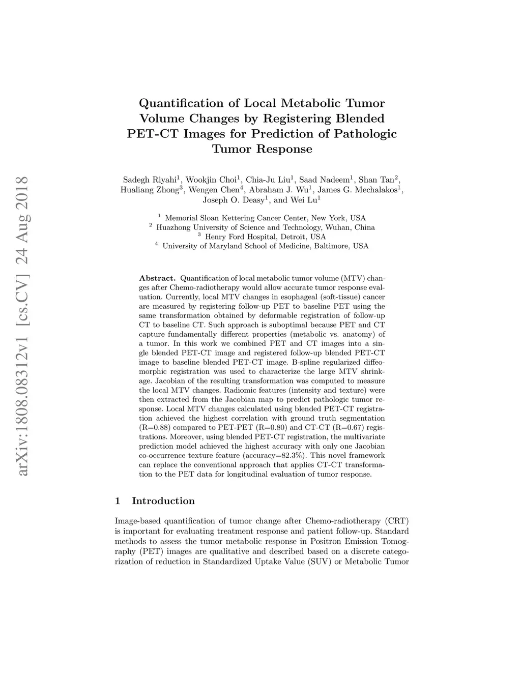 Blended PET-CT Images for Prediction of Pathologic Tumor Response