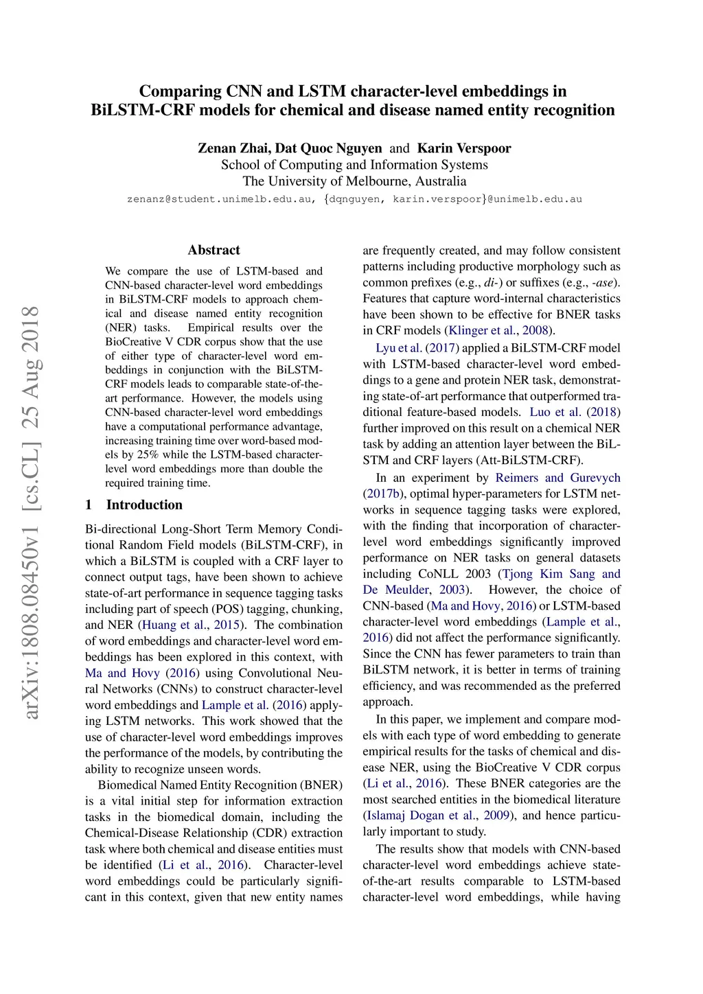 Comparing CNN and LSTM character-level embeddings in BiLSTM-CRF models