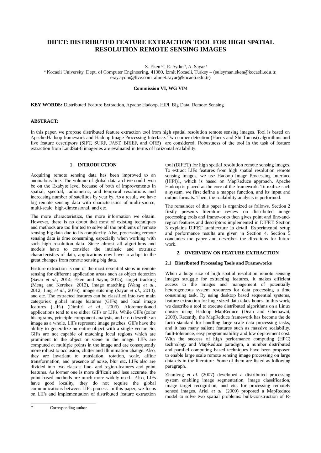 DIFET: Distributed Feature Extraction Tool For High Spatial Resolution