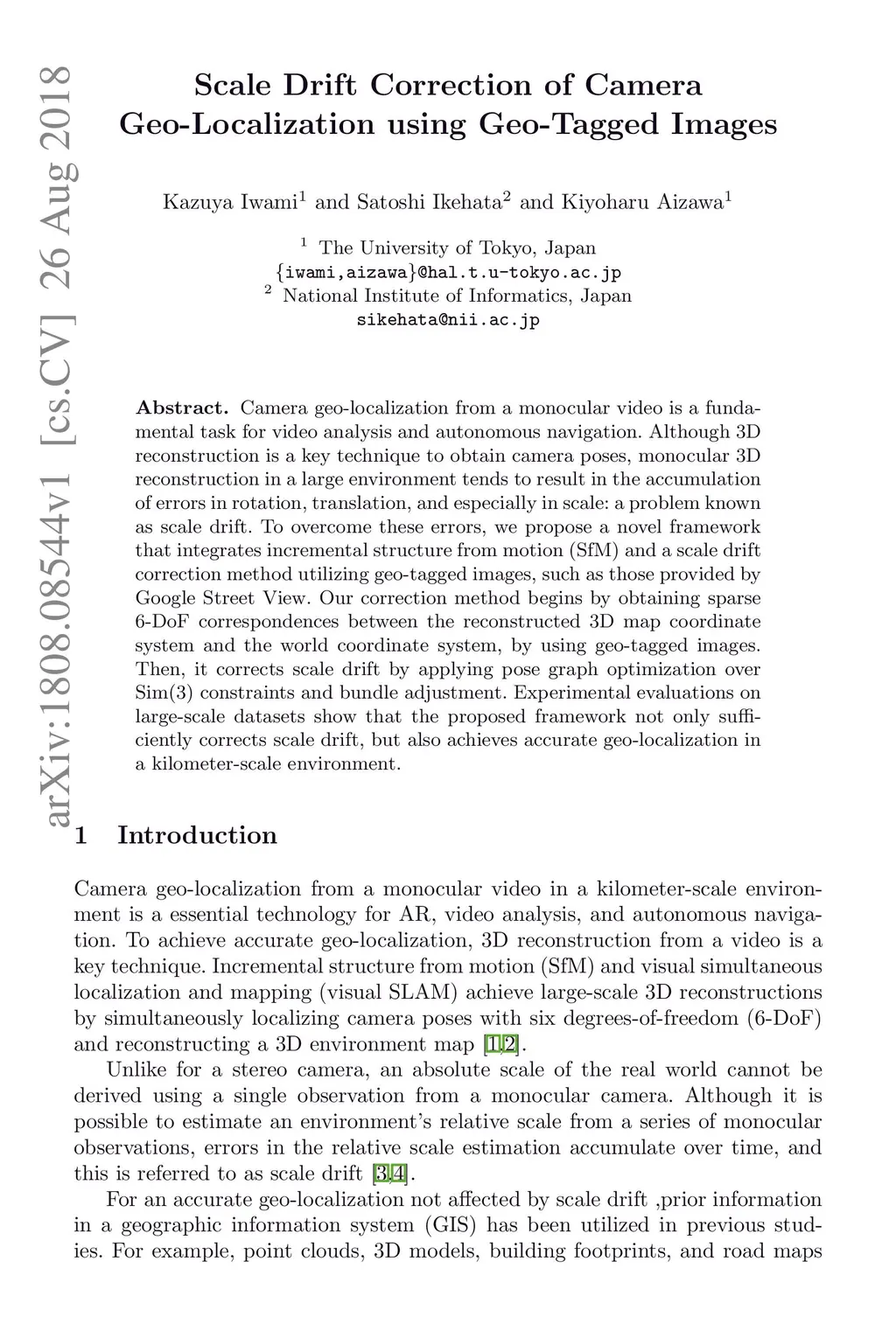 Scale Drift Correction of Camera Geo-Localization using Geo-Tagged