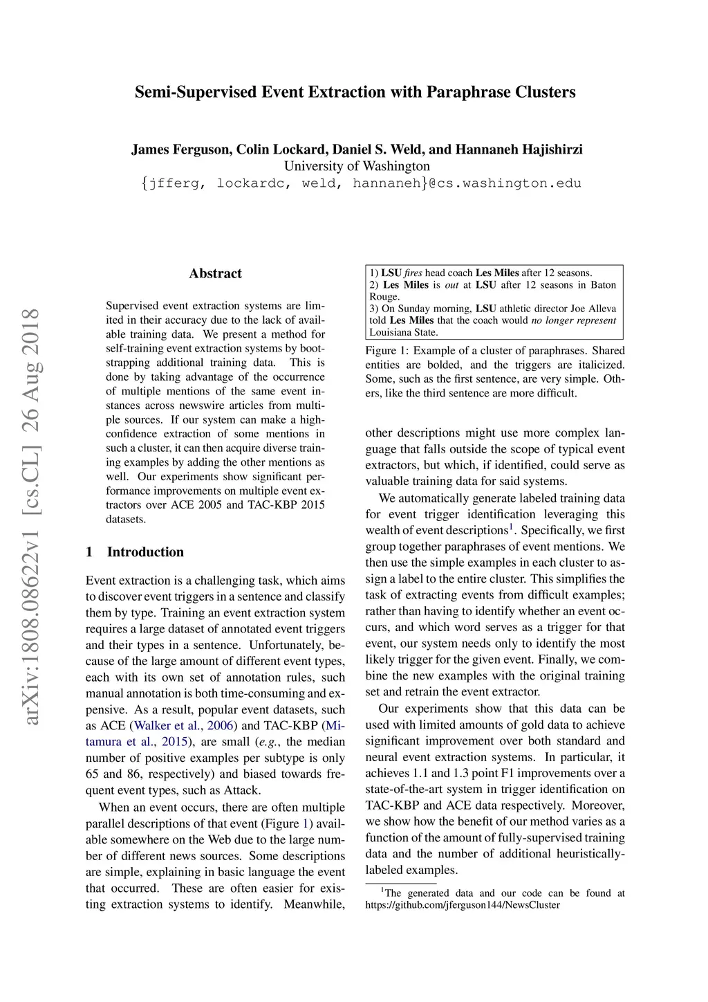 Semi-Supervised Event Extraction with Paraphrase Clusters