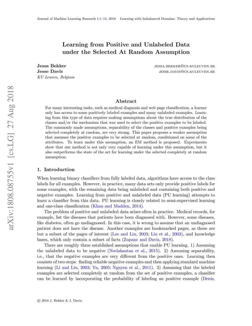 Learning from Positive and Unlabeled Data under the Selected At Random