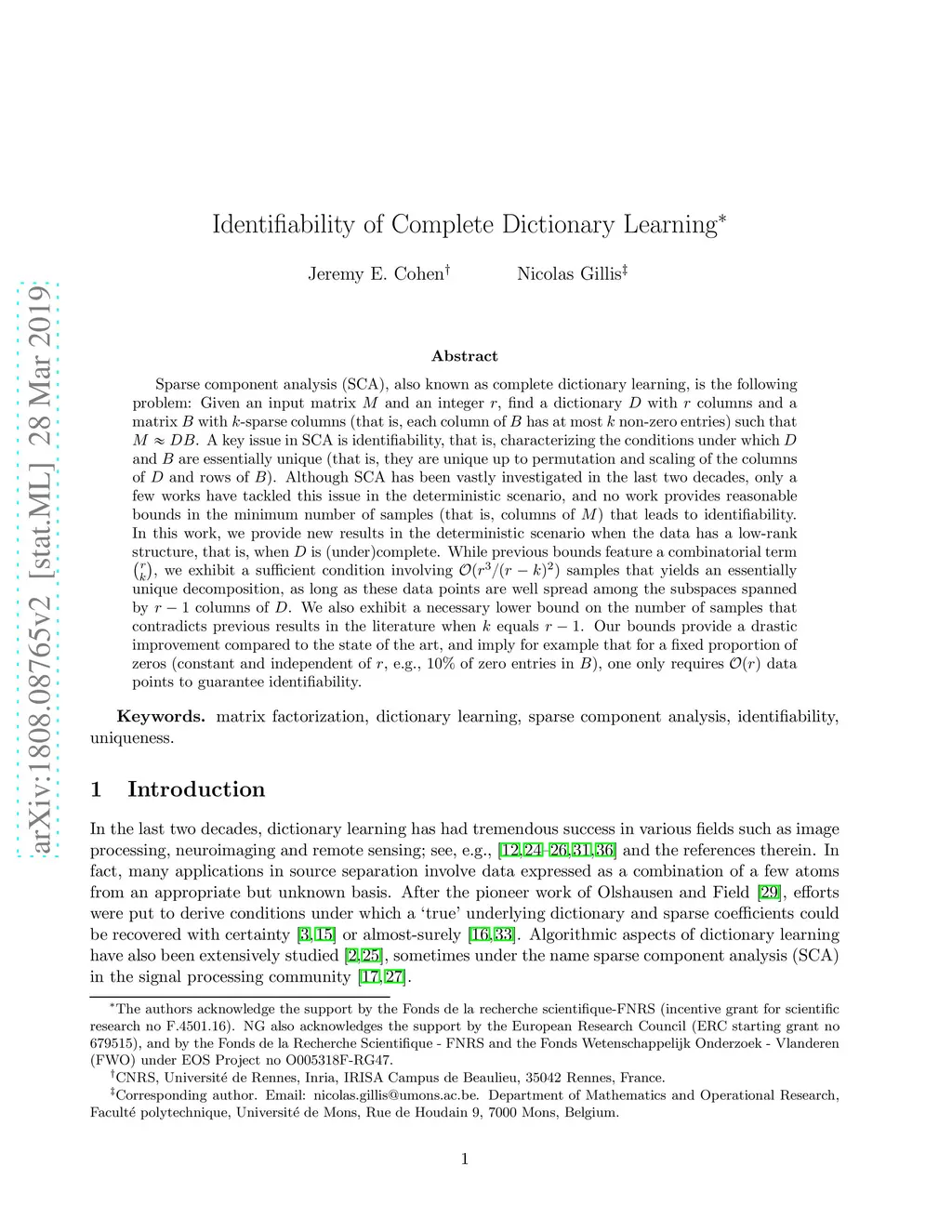 Sparse component analysis (SCA), also known as complete dictionary learning, is the following problem: Given an input matrix and an integer , find a dictionary with columns and a matrix with -sparse columns (that is, each column of has at most non-zero entries) such that . A key issue in SCA is identifiability, that is, characterizing the conditions under which and are essentially unique (that is, they are unique up to permutation and scaling of the columns of and rows of ). Although SCA has been vastly investigated in the last two decades, only a few works have tackled this issue in the deterministic scenario, and no work provides reasonable bounds in the minimum number of samples (that is, columns of ) that leads to identifiability. In this work, we provide new results in the deterministic scenario when the data has a low-rank structure, that is, when is (under)complete. While previous bounds feature a combinatorial term , we exhibit a sufficient condition involving samples that yields an essentially unique decomposition, as long as these data points are well spread among the subspaces spanned by columns of . We also exhibit a necessary lower bound on the number of samples that contradicts previous results in the literature when equals . Our bounds provide a drastic improvement compared to the state of the art, and imply for example that for a fixed proportion of zeros (constant and independent of , e.g., 10\% of zero entries in ), one only requires data points to guarantee identifiability.