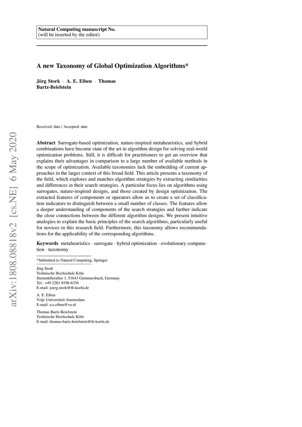 A new Taxonomy of Continuous Global Optimization Algorithms