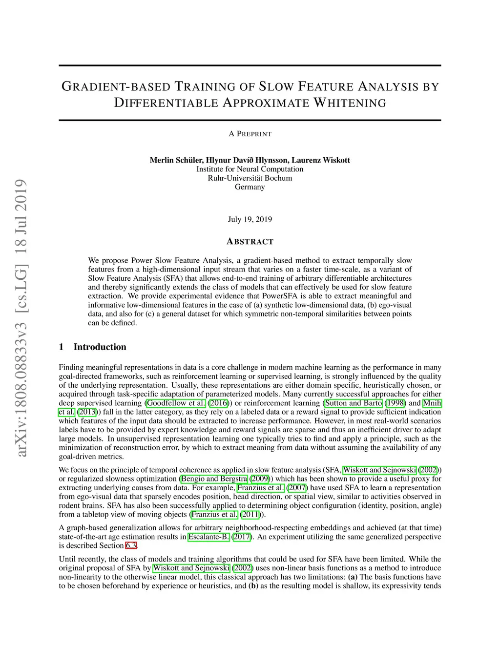 Gradient-based Training of Slow Feature Analysis by Differentiable